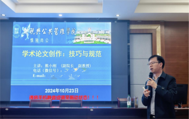 10月23日晚上,麻豆网 在财税大楼105会议室举办了题为“学术论文创作:技巧与规范”的学术讲座。本次讲座由熊小刚副院长主讲,2024级全体学术型研究生参加。