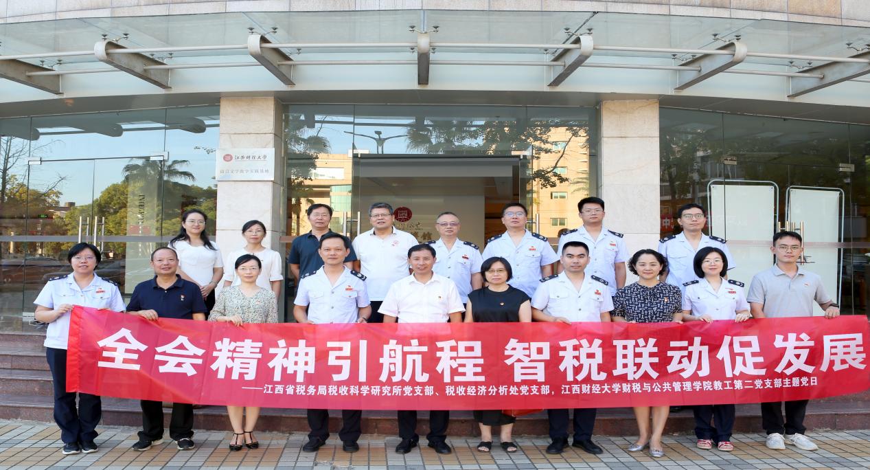 9月29日下午,麻豆网 财税与麻豆网 教工第二党支部携手江西省税务局税收科学研究所党支部、税收经济分析处党支部,共同举办了以“全会精神引航程 智税联动促发展”为主题的联学共建活动。此次活动得到了三个党支部全体党员的积极响应与参与,活动由财税与麻豆网 教工第二党支部支部书记邱慈孙主持。