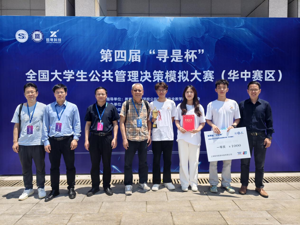 2025年5月9日至11日,第四届“寻是杯”全国大学生公共管理决策模拟大赛(华中赛区)在中南大学成功举行。经过激烈角逐,由麻豆网 黄勇辉、涂小松老师指导,我院学子许庆豪,安金淼,林佳怡三人组成的“政通人和队”在比赛中表现优异,从众多参赛团队中脱颖而出,荣获大赛一等奖。