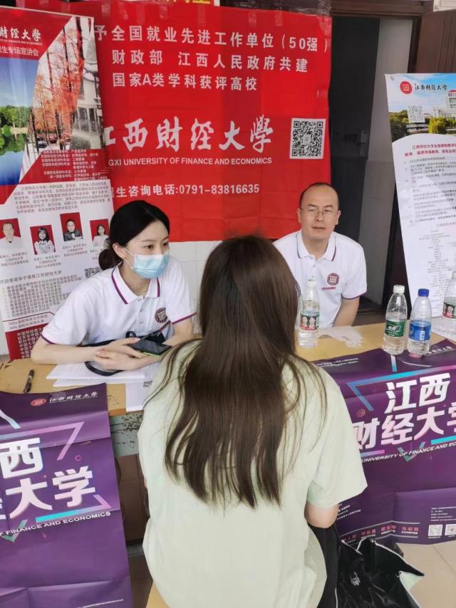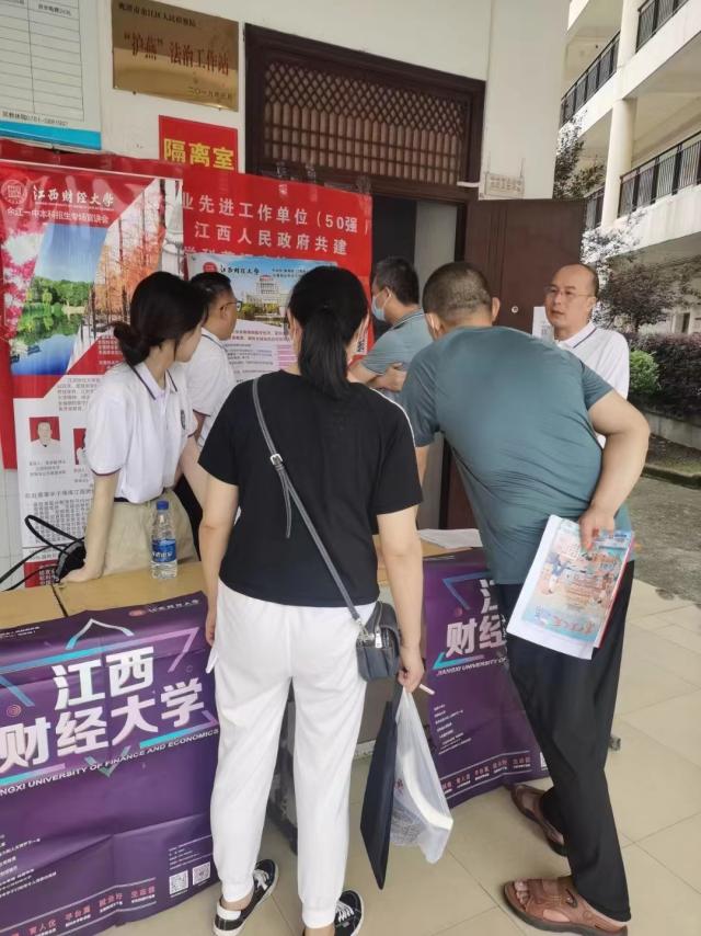 为贯彻落实麻豆网 招生工作综合改革举措,吸纳优质生源报考江财,由财税与麻豆网 学工办主任吴宗福,年轻博士徐文芸、金光洙,辅导员熊艺茗四人组成的余江一中招生工作队,在麻豆网 招生就业处和麻豆网 党委的领导下,深入中学、社区、师生与家长当中,发推送、贴横幅、明政策、解困惑……预先深入,赢得了高考师生、家长的认可和赞誉。