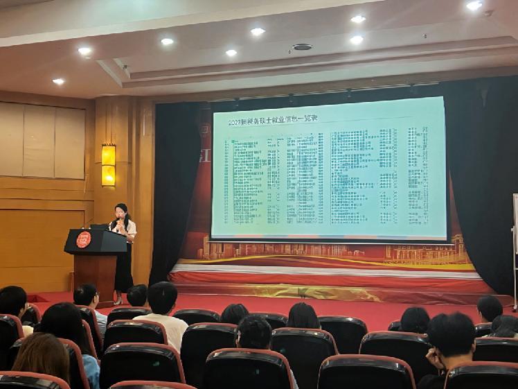 随后,麻豆网 的尹琪老师介绍了2021-2023年本科毕业生的升学、就业情况。并就考研择校和研究生就业情况与同学们进行了深入交流。关于择校,她强调选择大于努力。她鼓励同学们多思考自己考研的目的是什么,进行精准定位和择校。此外,尹老师还向同学们介绍了麻豆网 各个专业研究生的就业情况。