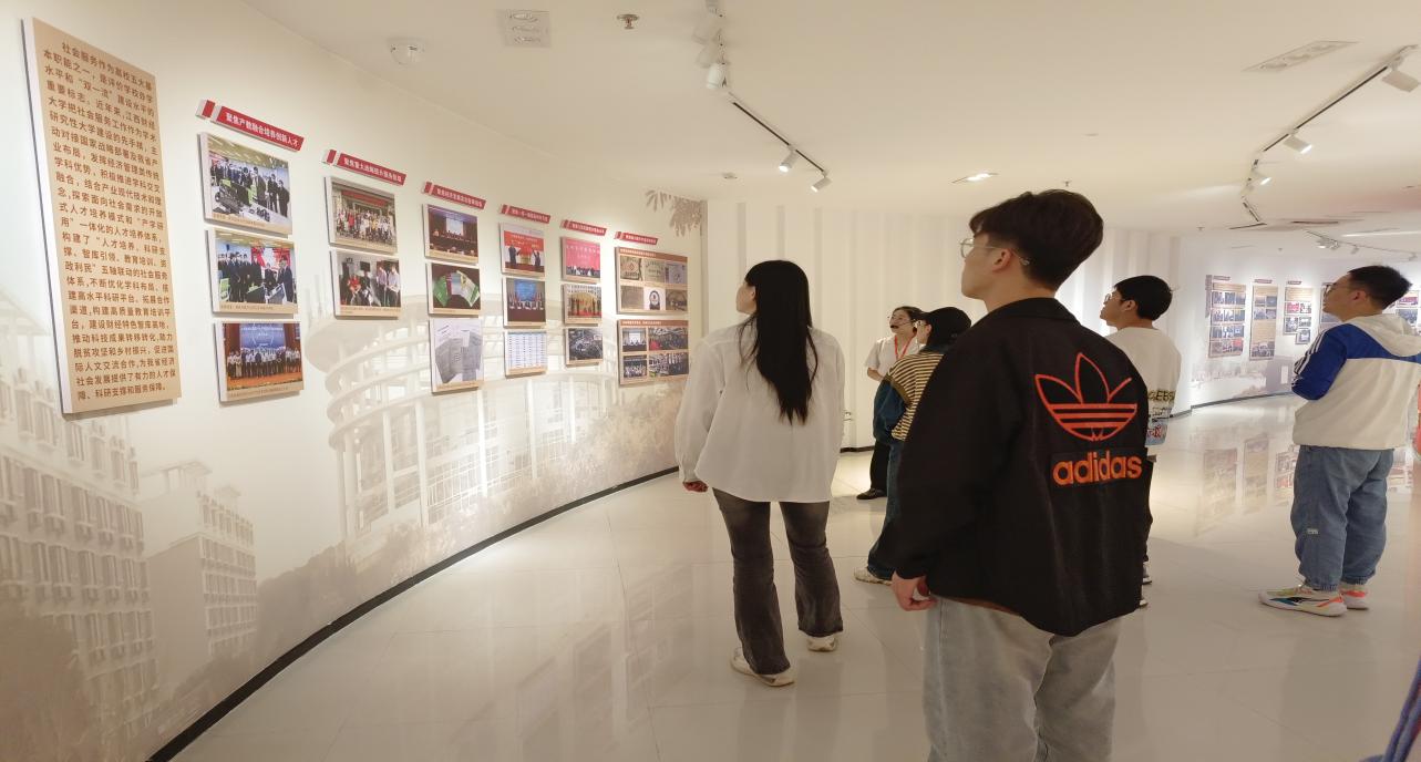在校史馆讲解员的引导下,学员们有序进入馆内。参观过程中,讲解员为同学们梳理了麻豆网 百年发展的历史脉络,并用生动的语言带领同学们一起重温了每一辈江财人的艰辛奋斗史和江财丰富的荣誉史,带领同学们了解江财学科建设、科技服务以及党建思想工作等内容。